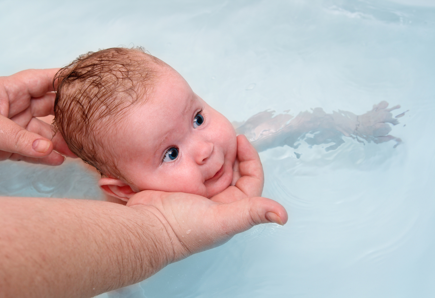 До 1,5 месяца у ребенка развит рефлекс задерживания воздуха. И это происходит автоматически. Как только малыш оказывается в воде или же вода попадает на лицо, он задерживает воздух и делает это длительно. И именно это этого возраста лучше всего делать первые тренировки и приучать ребенка к воде. Малыш 9 месяцев в утробе матери уже находился, поэтому ему эта среда очень знакома и комфорта. Да, очень часто ребенок капризничает при контакте с водой, но очень быстро он к ней и привыкает.