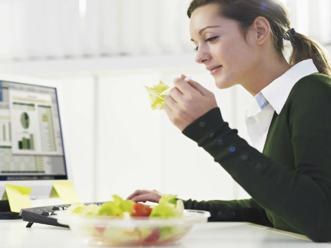 Немногие знают, что соблюдение правильного питания не требует слишком уж сильных ограничений в еде или отказа от любимых сладостей. Самое главное, сытно завтракать и плотно обедать. Такие завтрак и обед обеспечат энергией на весь день и удержат вас от калорийных перекусов. Если все же удержаться от “пожевать чего-то вкусненького” невозможно, возьмите с собой горсть изюма, сушеных фруктов, обезжиренный творог или йогурт. Помимо этого, есть несколько секретов как съедать меньше. Для этого лучше записывать все продукты, которые вы съедаете в течение рабочего дня, забыть о совместных перекусах и делиться едой с сотрудниками. Так вы не только получите море позитива от благодарных коллег, но и меньше съедите.
