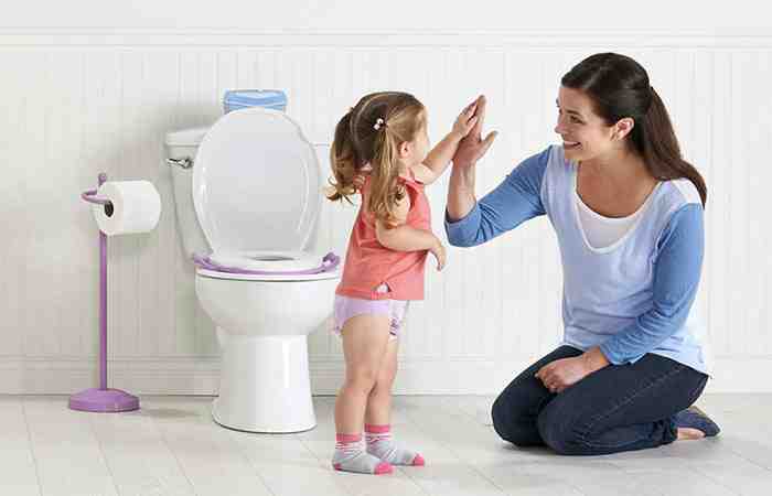 Как правило, дети переходят на взрослый туалет в возрасте 3,5-5 лет. Для того, чтобы переводить его необходимо обеспечить максимальный комфорт для ребенка при пользовании унитазом и учесть следующее: